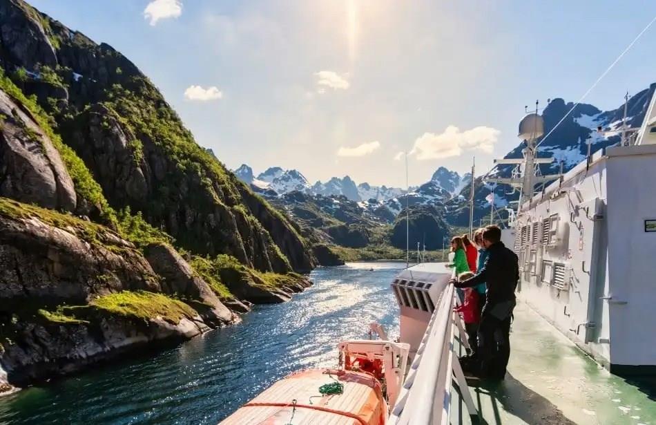• Discover Norway’s entire coastal route with 34 ports of call, sailing past more than 100 fjords and 1,000 mountains